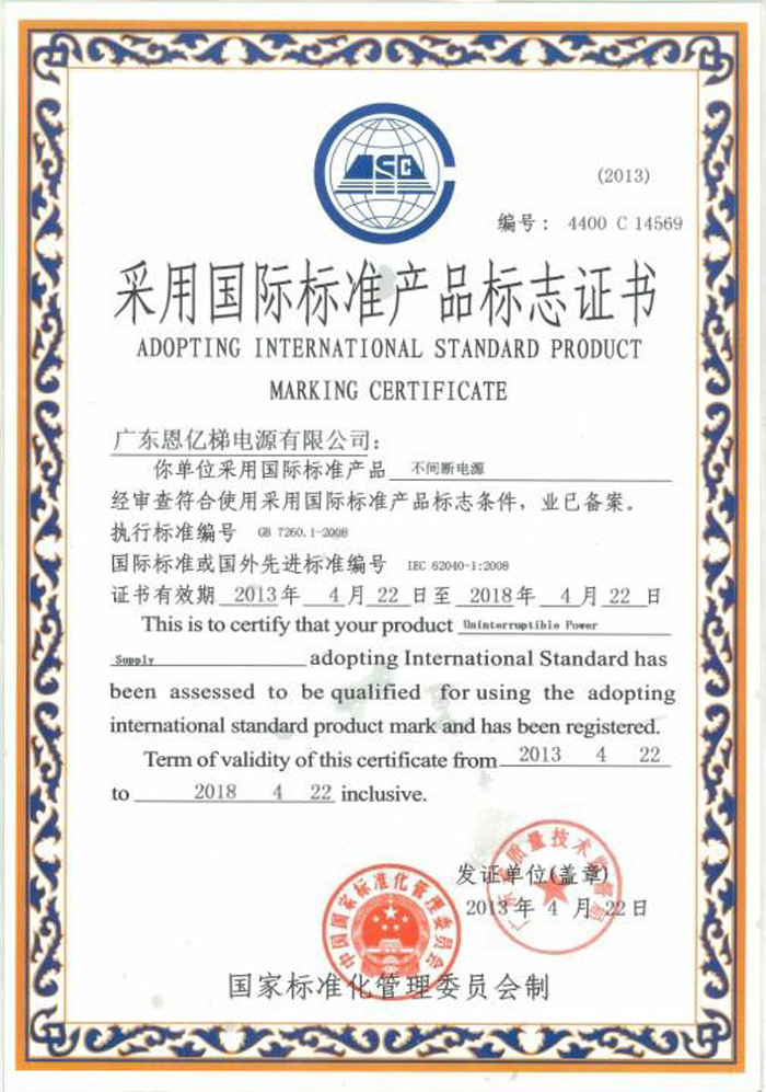 采用國(guó)際標(biāo)準(zhǔn)產(chǎn)品標(biāo)志證書