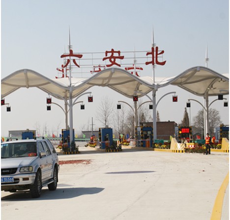 合六葉高速公路六安北收費站改擴建工程建設地點為安徽省六安市。原收費站車道數(shù)3進5出,收費天棚寬44.4m,結(jié)構(gòu)為網(wǎng)架球結(jié)構(gòu)形式;改造后收費站車道數(shù)6進9出,收費天棚寬88.3m,結(jié)構(gòu)為網(wǎng)架球結(jié)構(gòu)形式。