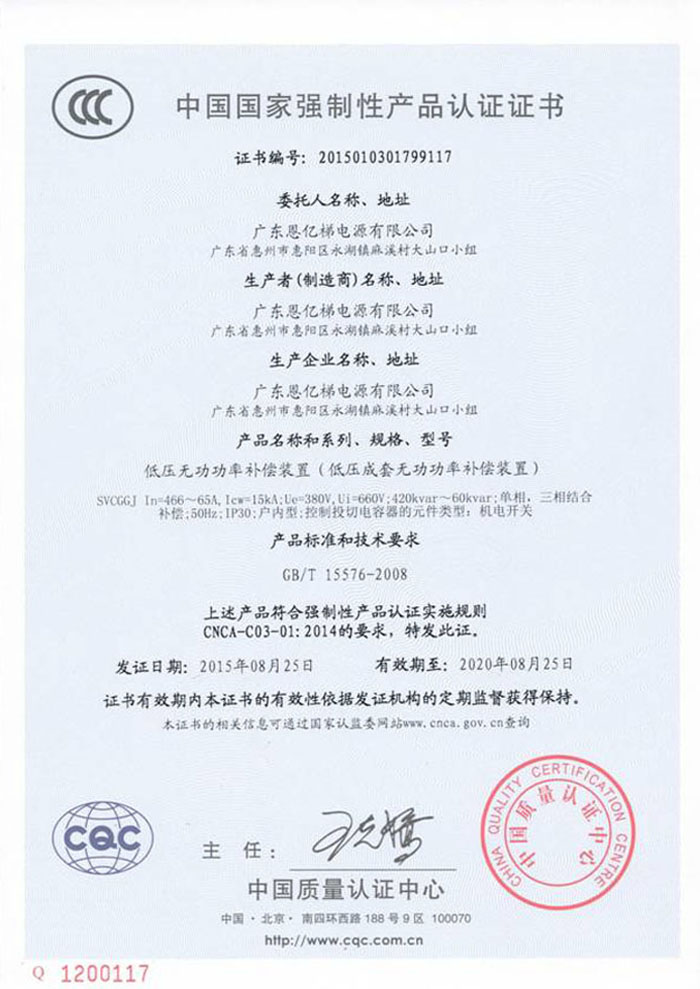中國國家強制性產品認證(低壓無功功率補償裝置)
